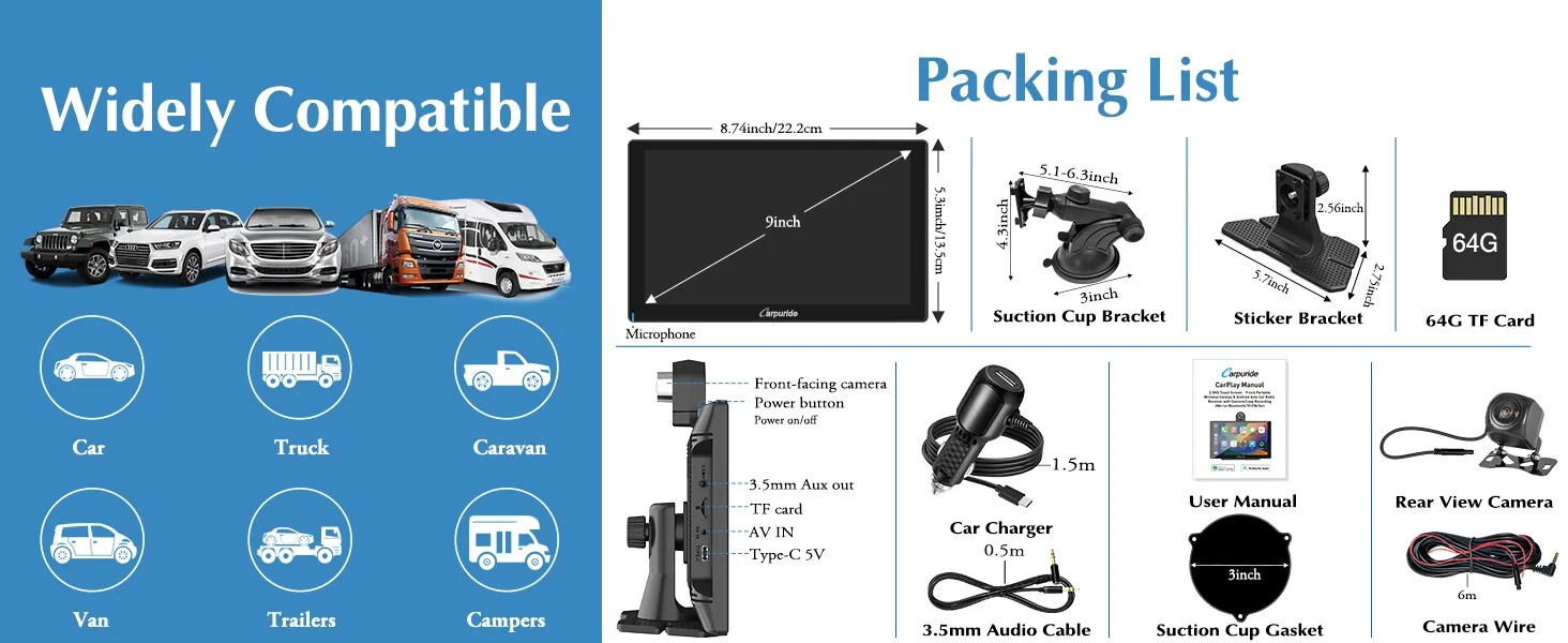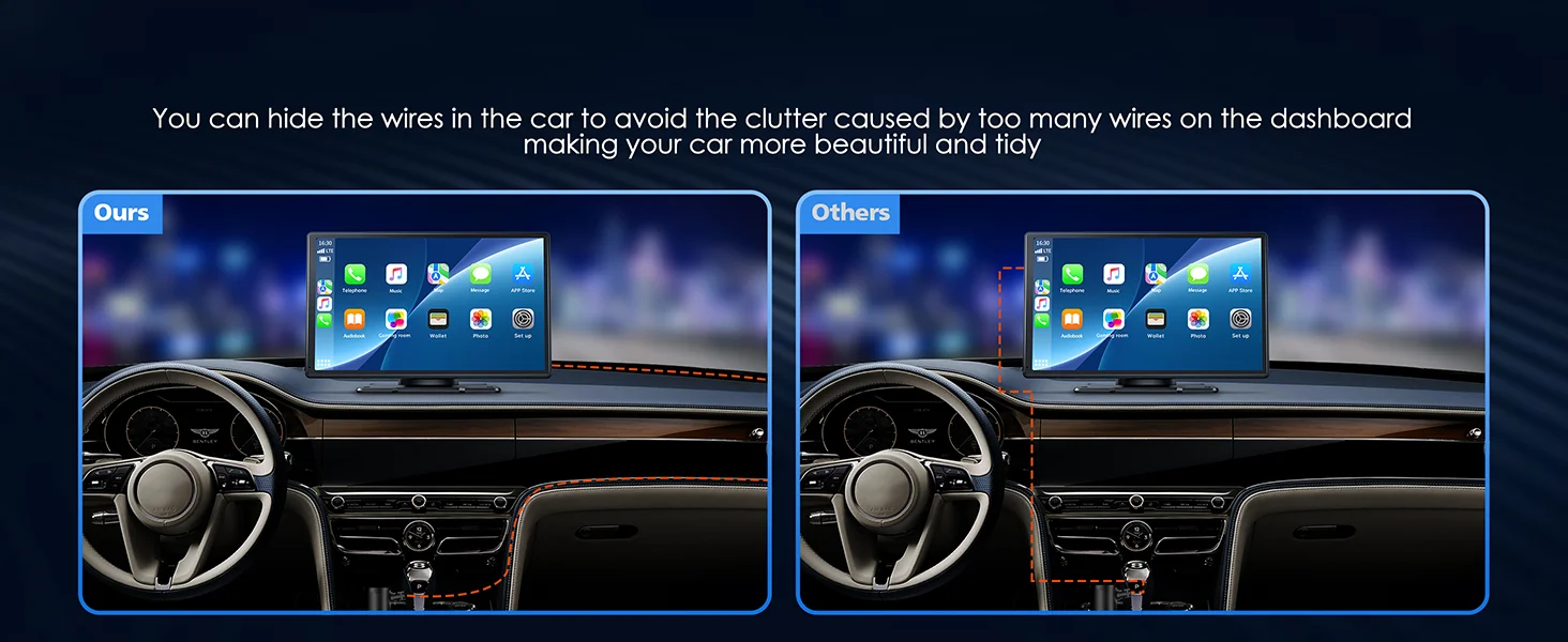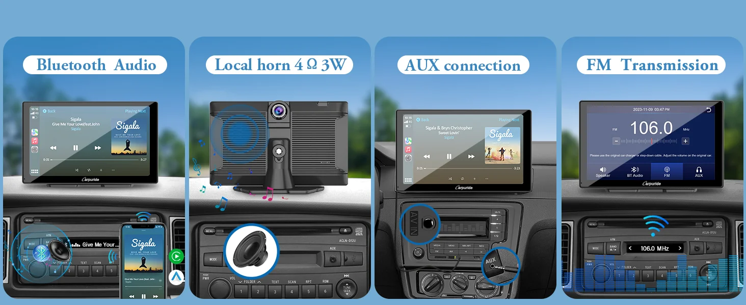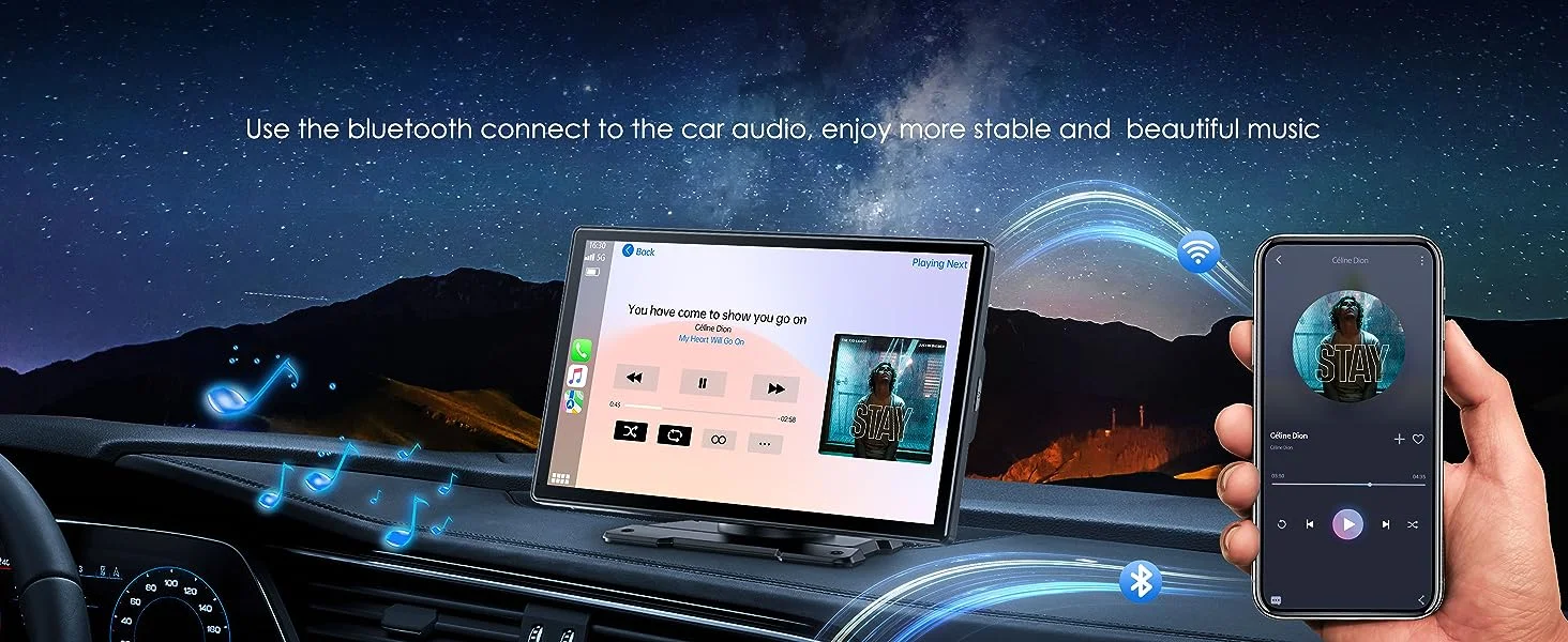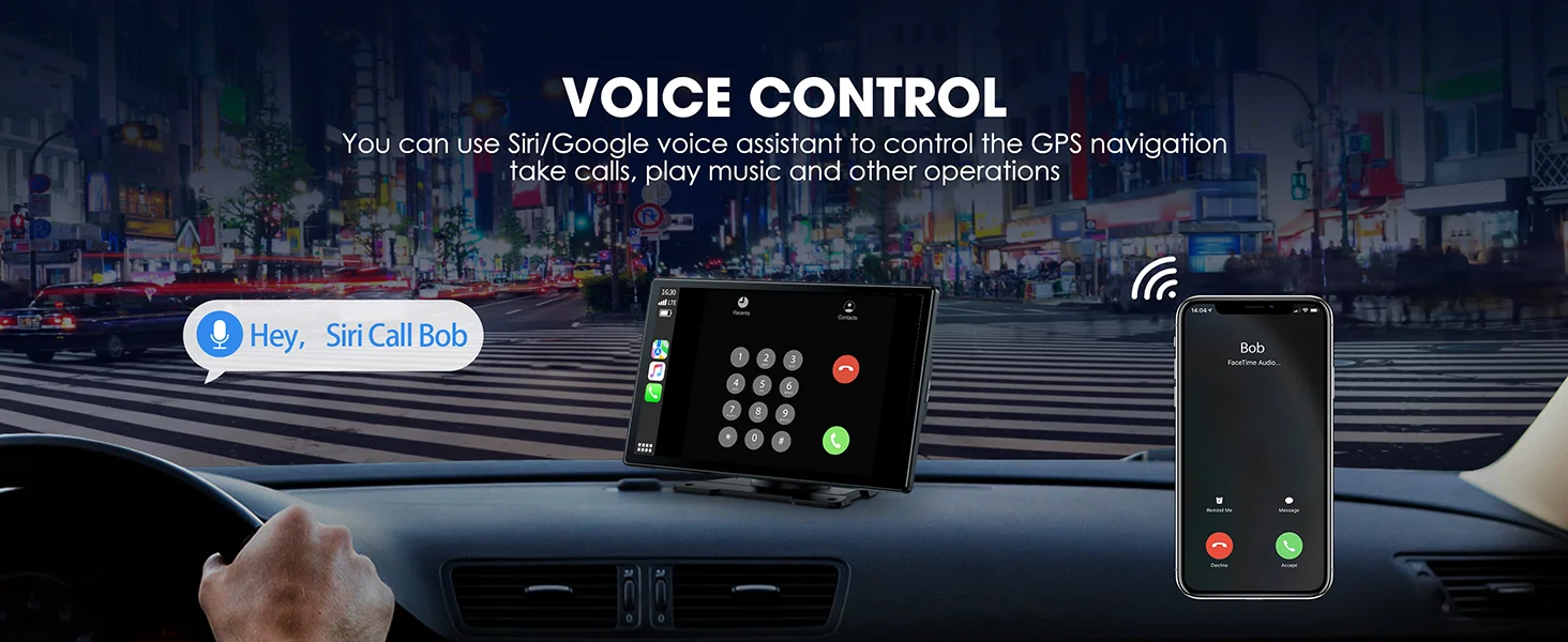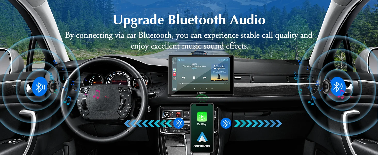 🚘 【Atualize o som estéreo Bluetooth com controlo de voz】 Experimente um som de alta qualidade com conectividade Bluetooth no seu telefone; O microfone CarPlay transparente integrado permite-lhe operar o seu telefone enquanto conduz, sem ter de o proteger constantemente. Pode enviar comandos de voz para aceder ao Siri/Google Assistant como “tocar música”, “navegação GPS”, “enviar mensagens” ou “criar links”. É muito fácil de utilizar.