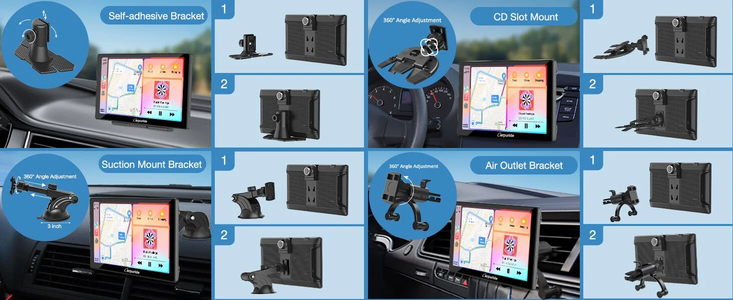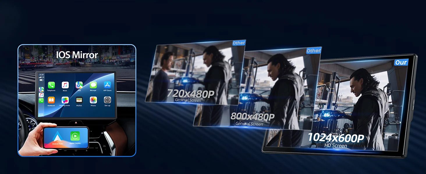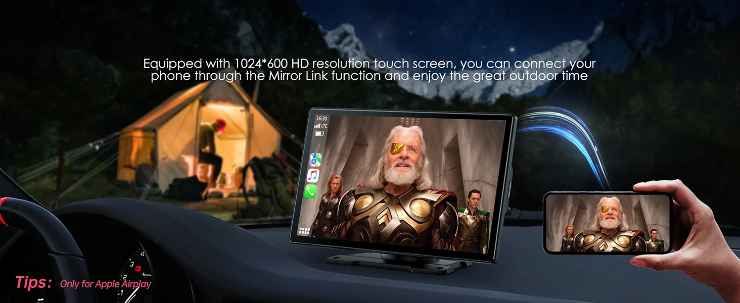 🚘 【Reproduza vídeos com Apple Airplay e ecrã táctil HD de 7 polegadas】 Necessita de ligar o iPhone e o Carplay à mesma rede Wi-Fi, selecionar SmartScreen, selecionar a visualização do ecrã no centro de controlo do iPhone e reproduzir YouTube, TikTok e mais filmes. . Este ecrã de reprodução portátil do Apple Car tem uma resolução de toque HD 1024 * 600 de 7 polegadas e suporta a reprodução de vídeo 1080P. Mesmo em livros e em viagem, pode ver filmes em alta definição no grande ecrã.🤷♀️(Não é fornecido pela Netflix)