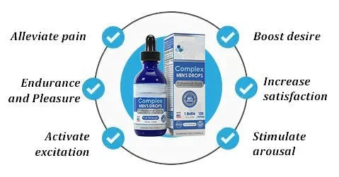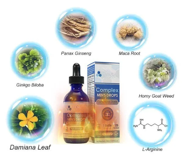 A poderosa fórmula de Complex Men's Drops contém mais de dez extratos de ervas refinados e vitaminas e minerais essenciais, tornando-o um afrodisíaco natural. Com esta fórmula poderosa, Complex Men's Drops pode aumentar rapidamente o fluxo sanguíneo e aumentar a dureza e o comprimento, uma condição que pode ser mantida por 4-5 horas, o que é difícil de conseguir com medicamentos típicos. Suas vantagens incluem a capacidade de restaurar a capacidade regenerativa dos testículos com uso prolongado, conseguindo um efeito regenerativo.