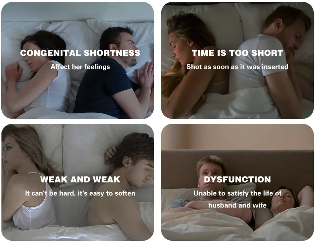 Um estudo realizado pela " DMW - German Medical Weekly " revelou que nos países ocidentais mais de 60% dos homens com idades entre 30 e 60 anos sofrem de ejaculação precoce (EP) e disfunção erétil (DE) . Além disso, esses números aumentam com o tempo. Inicialmente ignorado, este problema piora com o tempo e pode levar à perda de funções sexuais valiosas.